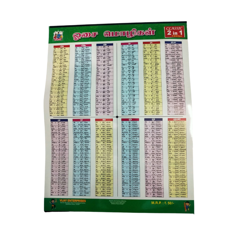 Our charts covers topics : Uyir Mey Ezuthukal & Osai Mozhikal (2 in 1)
